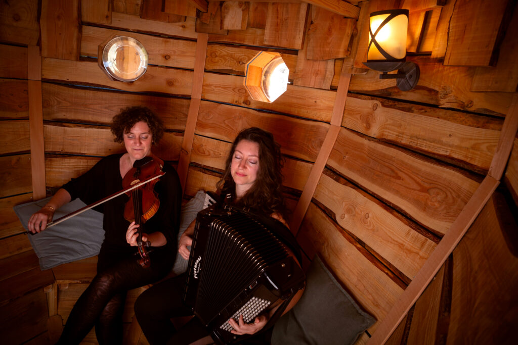 Fanny et Marie s’inspirent de leurs voyages musicaux, de leurs rencontres et de leurs découvertes. Après avoir bourlingué en Europe, seules ou à deux, elles ont élaboré un répertoire commun où les airs traditionnels réarrangés et revisités se marient à des compositions personnelles, teintées de leurs influences culturelles multiples et de leur formation classique.